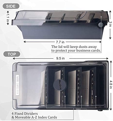The showcase (moo size) business card organizer. 4 out of 5 stars. Business card holder holds 300 cards pu leather business card case for men women. Business card?ãƒâ¿holders and credit card holders keep your important cards neat, organized and protected. Similar to a business card book, a rotary business card file (or rolodex) simply sorts your business cards in a rolling cylinder which makes it easy to find your cards. 4.7 out of 5 stars. Accessories for use with your rolodex card files. Keep all the business cards you receive neatly organized, easy to find in one place, and protected in this business card organizer. Store cards in a business card file box. Each page holds up to 20 cards. ( 4.7 ) out of 5 stars 25 ratings , based on 25 reviews current price $4.38 $ 4. 4.4 out of 5 stars. Depth is the distance into the box from the opening to the bottom of the box.